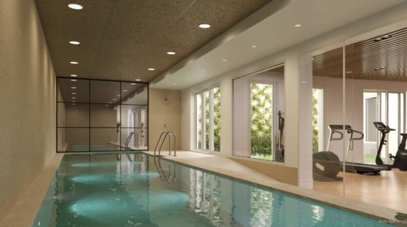 Dispone de Jardín, piscina climatizada y salina junto al gimnasio