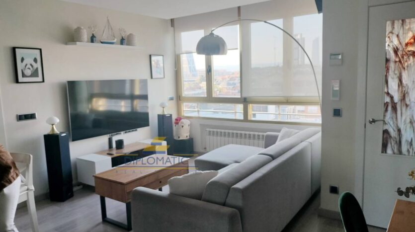 Diplomatic Real Estate, ofrece espectacular piso en planta 11, situado en esquina, con impresionantes vistas a la sierra de Madrid, la urbanizacion dispone de piscina comunitaria de amplias dimensiones, para uso y disfrute en los meses de calor, poco habitual en edificaciones de Madrid capital, la vivienda incluye plaza de garaje, con acceso directo y como al edificio, la vivienda es moderna, funcional y esta muy bien cuidada, por su altura permite poder disfrutasr de agradables vistas. Es ideal para quienes buscan luz natural y calidad de vida en pleno Madrid.
