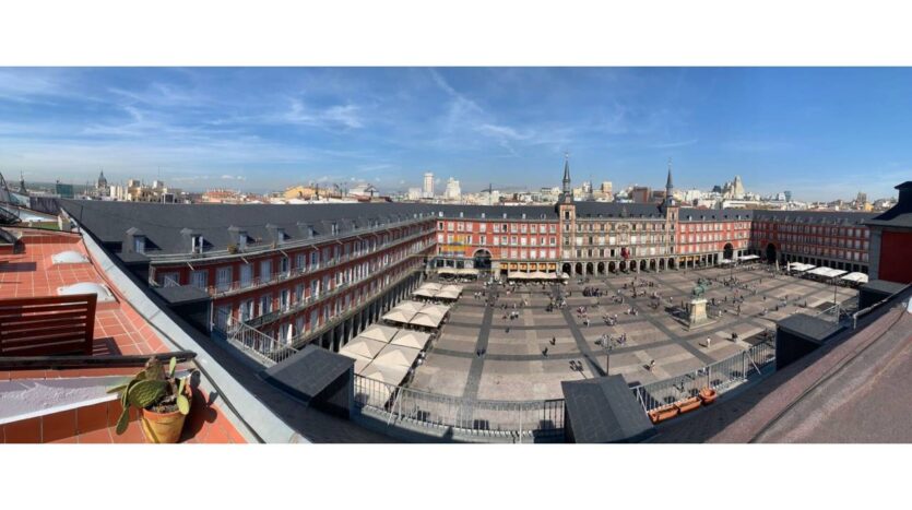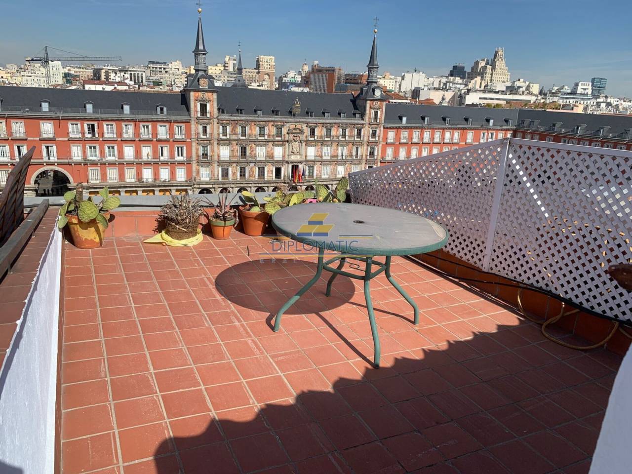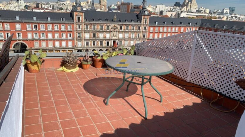 Diplomatic Real Estate ofrece bonito Ático en plena plaza Mayor de 70m2 con terraza de unos 22m2, se encuentra ubicado en uno de los lugares mas emblemáticos y turísticos de la ciudad de Madrid. Excelente comunicaciones y servicios en el entorno, es un barrio que combina historia,turismo y vida cotidiana.La vivienda cuenta con un recibidor de entrada, que comunica con un espacioso Salón-Comedor con cocina abierta completamente equipada. cuenta con 2 amplios balcones aportándole mucha luz a la vivienda. 2 dormitorios.1 baño y un aseo. Desde la entrada a la vivienda podemos acceder por unas escaleras a una magnifica terraza de 22 m2 con unas vistas 360 grados inigualables en pleno centro de Madrid. Cuenta también con un pequeño cuarto trastero en la terraza. Aire acondicionado.