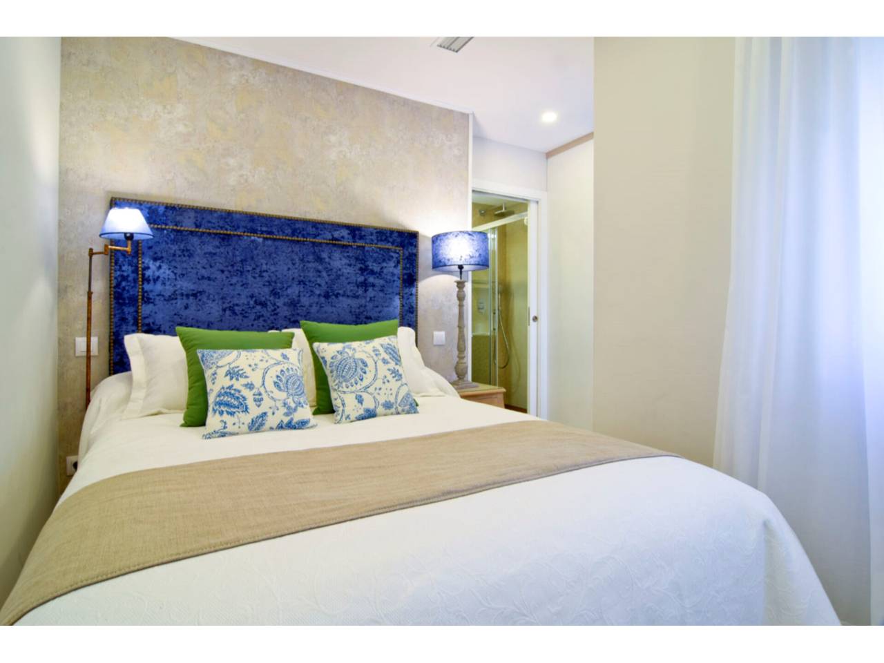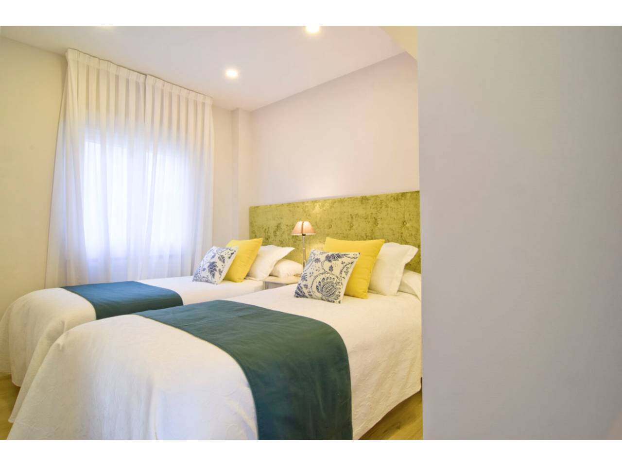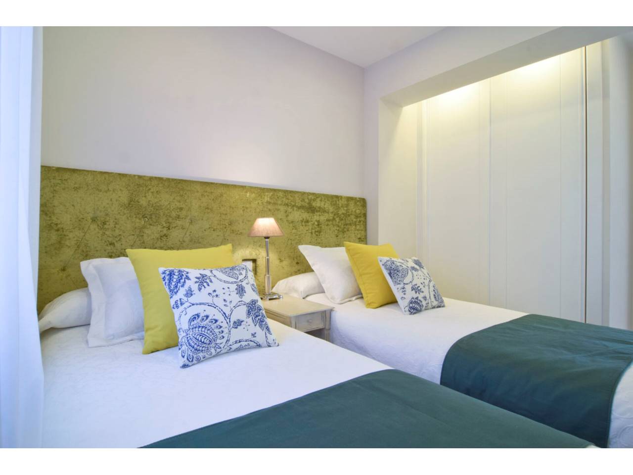 La zona de noche se compone de 2 dormitorios, el principal en suite con cama de matrimonio y vestidor. Los armarios están vestidos y son de techo a suelo, con gran capacidad de almacenaje. El segundo dormitorio dispone de 2 camas individuales, resultando acogedor, utiliza el baño que también sirve de cortesía para los invitados.