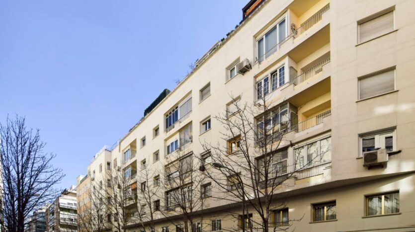 Diplomatic Real Estate alquila espectacular ático amueblado, exterior, luminoso, en edificio clásico del Barrio de Salamanca, que data de 1953.