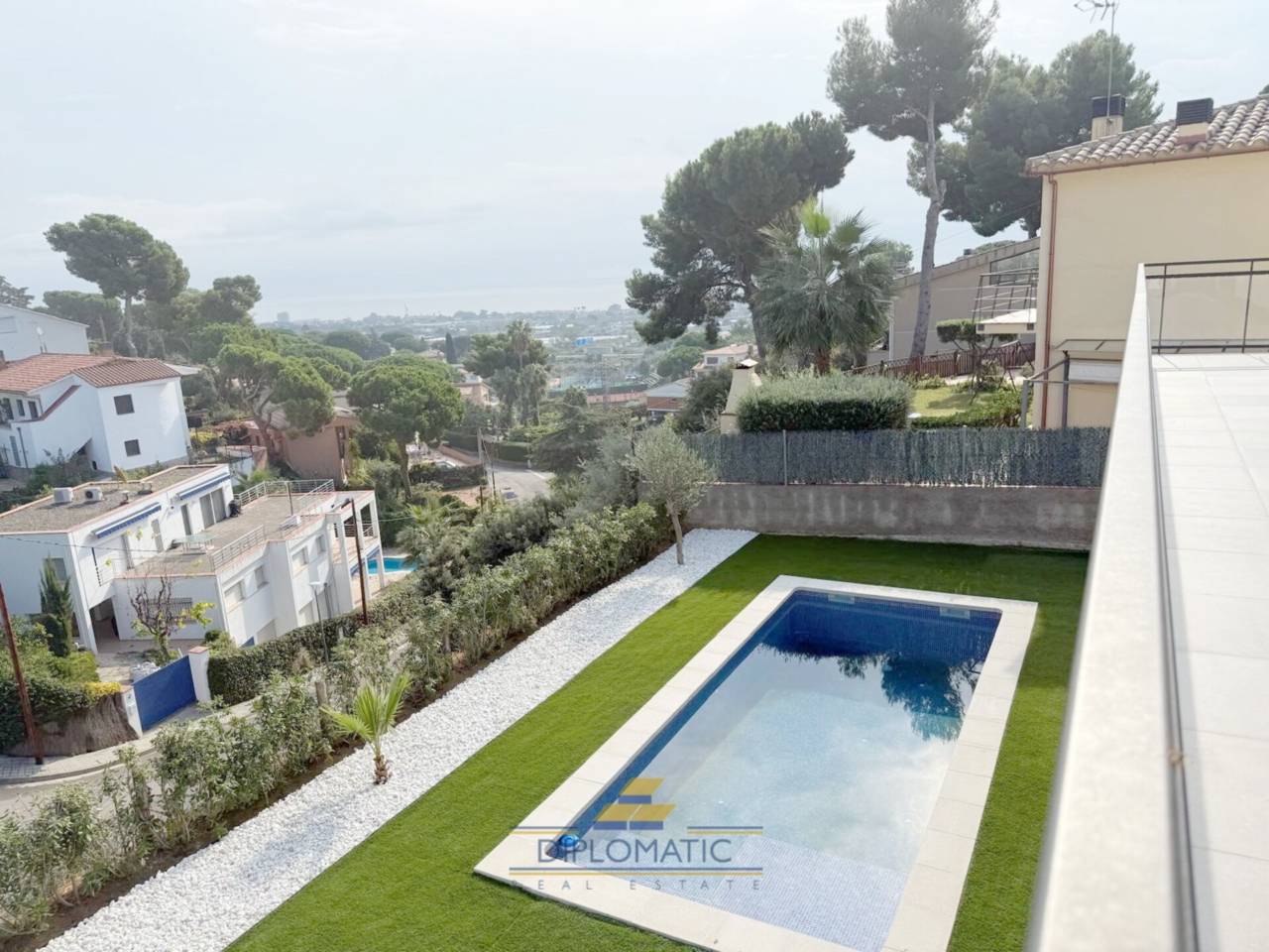 Diplomatic Real Estate ofrece chalet moderno con 3 plantas, jardín, piscina y trastero.