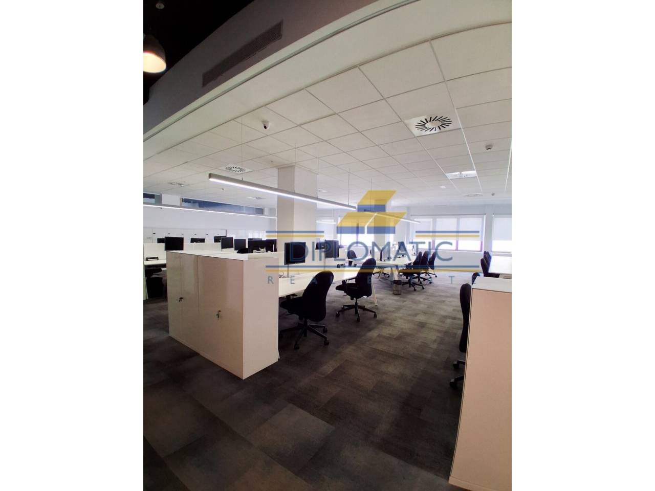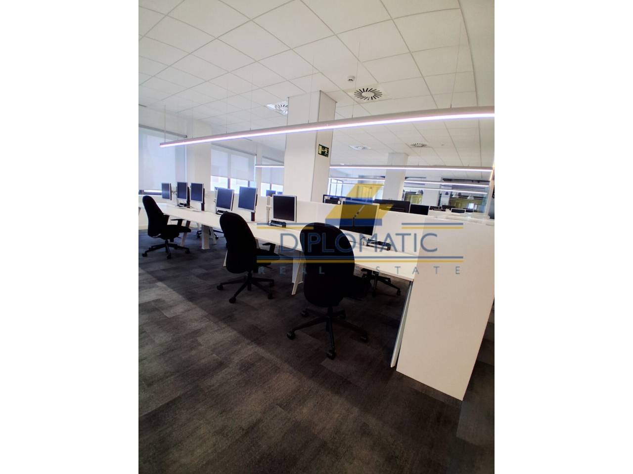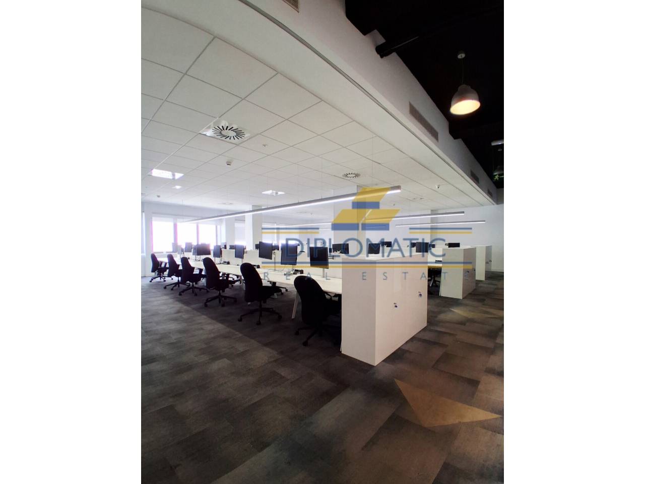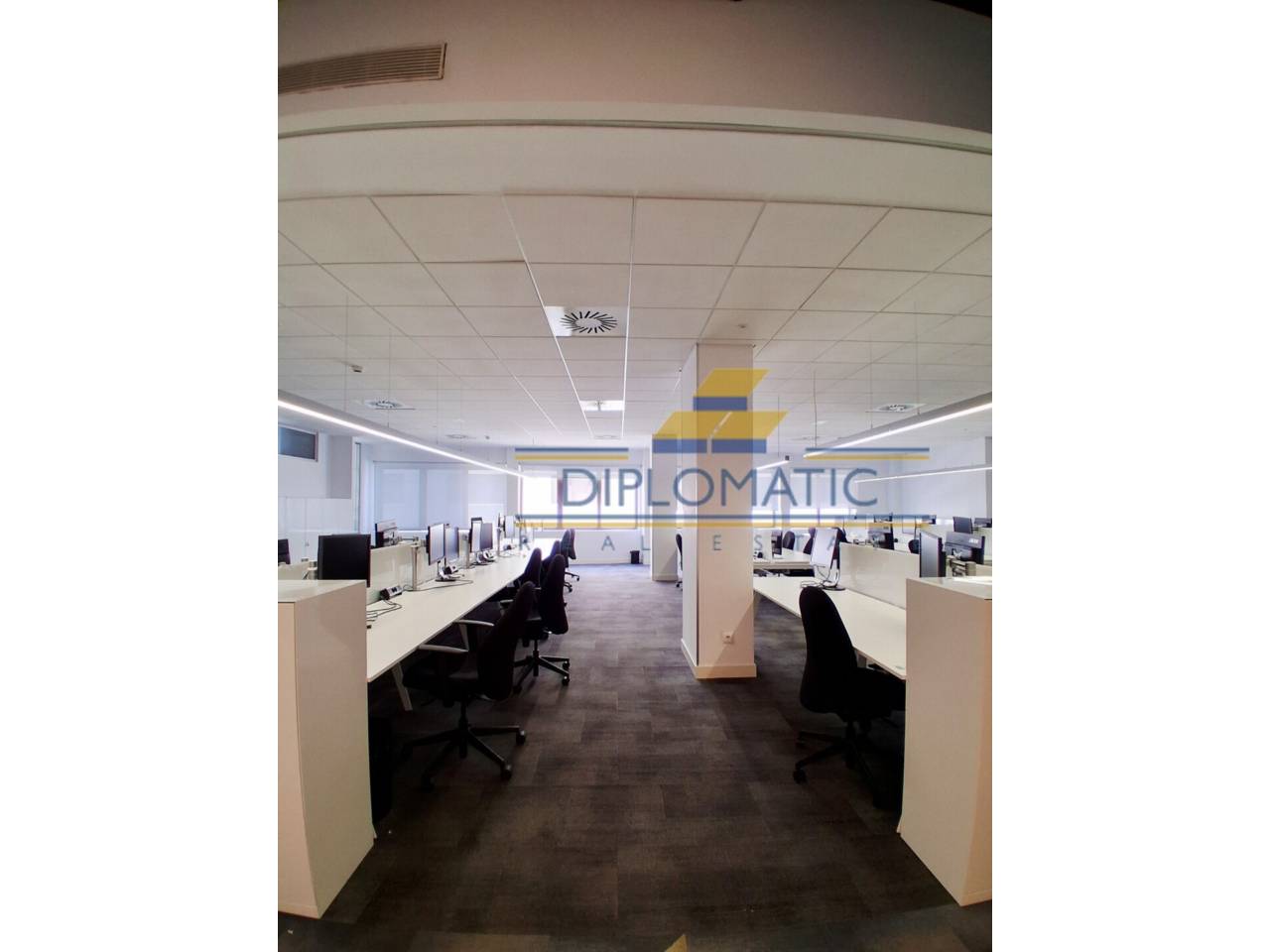 Diplomatic Real Estate ofrece, **Oficina PREMIUM y lista para entrar de 1000 m2 a 12.949€, ampliable a 1985 m2 (precio varía según m2), totalmente amueblada, equipada y reformada por estudio de interiorismo de alto nivel. **Distribución moderna con capacadad de más de 205 puestos de trabajo aproximadamente, ya que pueden ser mas o menos según la distribución y mobiliario.