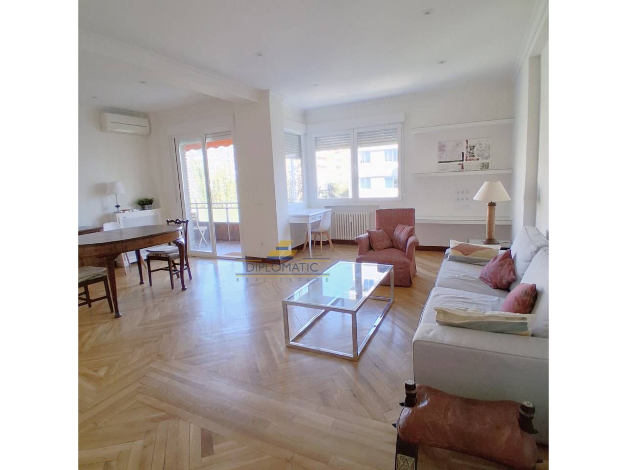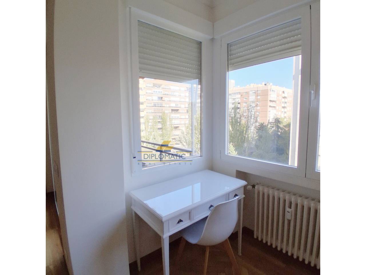 Diplomatic Real Estate ofrece piso luminoso piso situado en calle Orense, edificio tranquilo junto a zonas de jardines, con orientación este, dando al exterior por la zona trasera lo que asegura mayor silencio, edificio cuidado, con servicio de Portero y seguridad en findes de semana, ideal para familias.