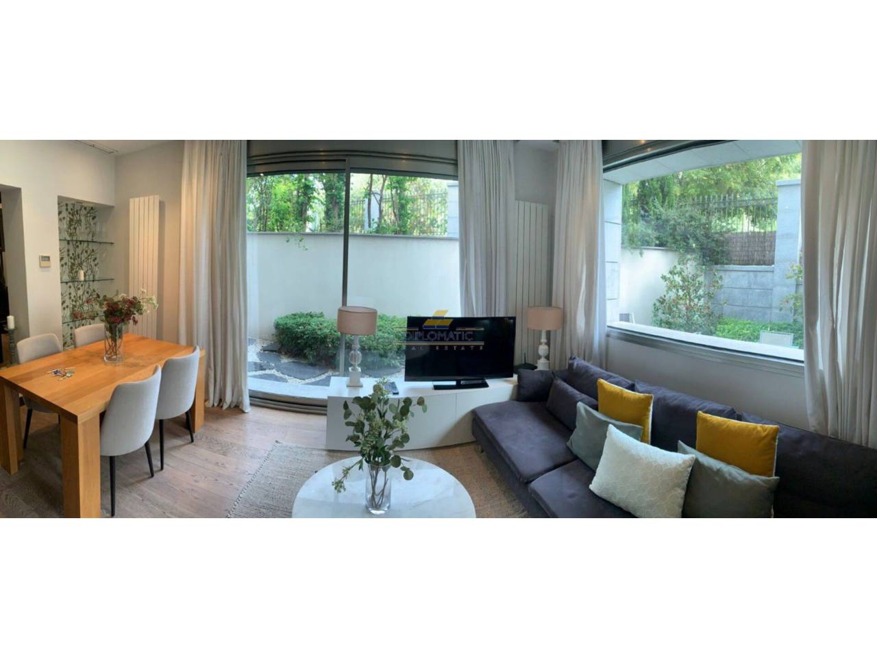 Diplomatic Real Estate ofrece Extraordinario apartamento amueblado de 68m2 en el Viso con Jardín-Terraza de unos 27 m2 privativa. en excelente ubicación a escasos metros de la calle Serrano, Maria de Molina y el Paseo de la Castellana. El apartamento se encuentra en uno de los barrios mas exclusivos de Madrid, en un entorno residencial, muy tranquilo y seguro. Excelentes comunicaciones y servicios. La vivienda cuenta con un recibidor de entrada donde podemos acceder por un lado a un espacioso Salón-Comedor muy luminoso con amplias ventanas correderas de suelo a techo donde podemos acceder a un jardín privativo de unos 25m2 muy agradable y acogedor. Del otro lado del Salón, accedemos a la cocina completamente equipada con electrodomésticos. En la zona del recibidor nos encontramos un practico aseo de servicio. Finalmente nos encontramos con un espacioso dormitorio con amplios armarios empotrados y baño integrado en suite. Desde el dormitorio también podemos acceder al jardín privativo. Aire acondicionado por conductos. Conserje en la finca. El apartamento cuenta con una excelente decoración, una practica distribución y unos materiales y acabados de alta calidad.