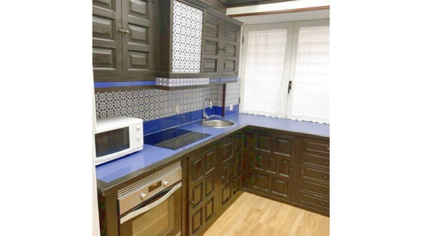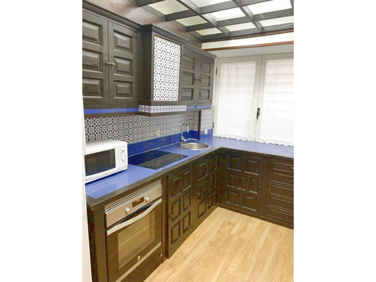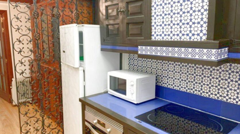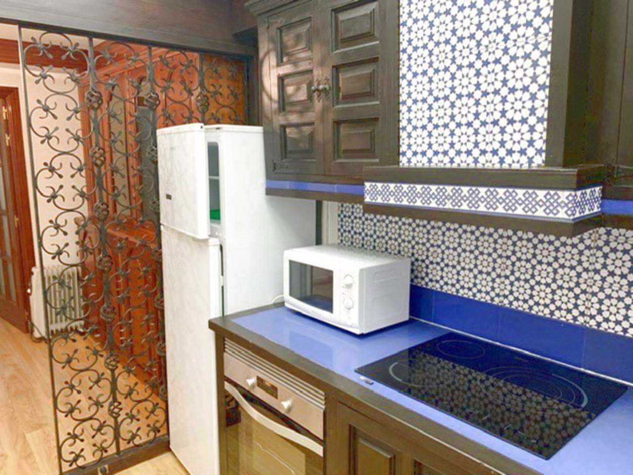 Cocina independiente separada por puertas de hierro forjado equipada con electrodomésticos