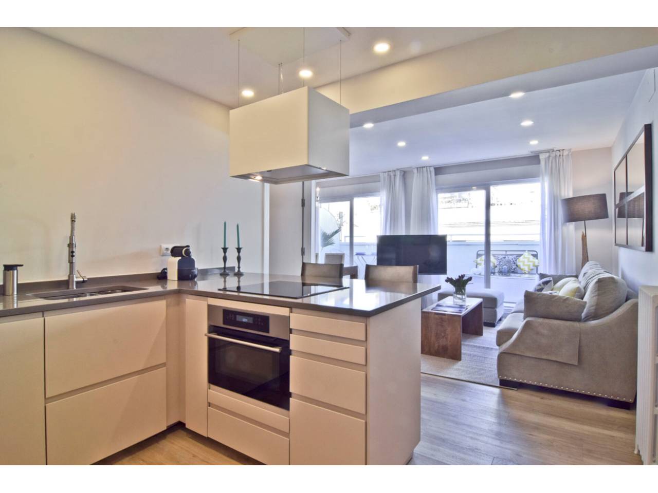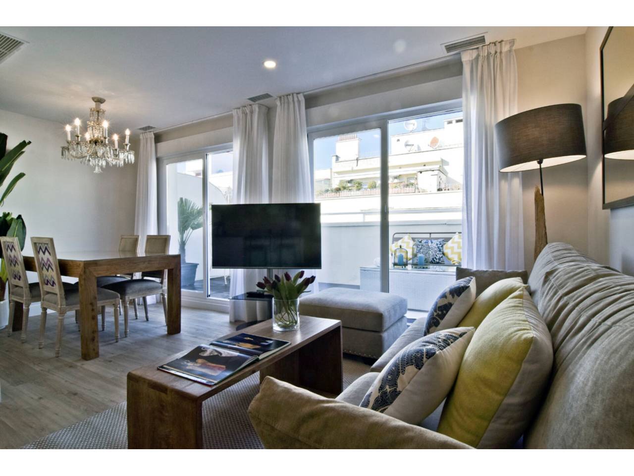 Todo unido tenemos el hall de entrada, salón, comedor y cocina integrada equipada y amueblada.