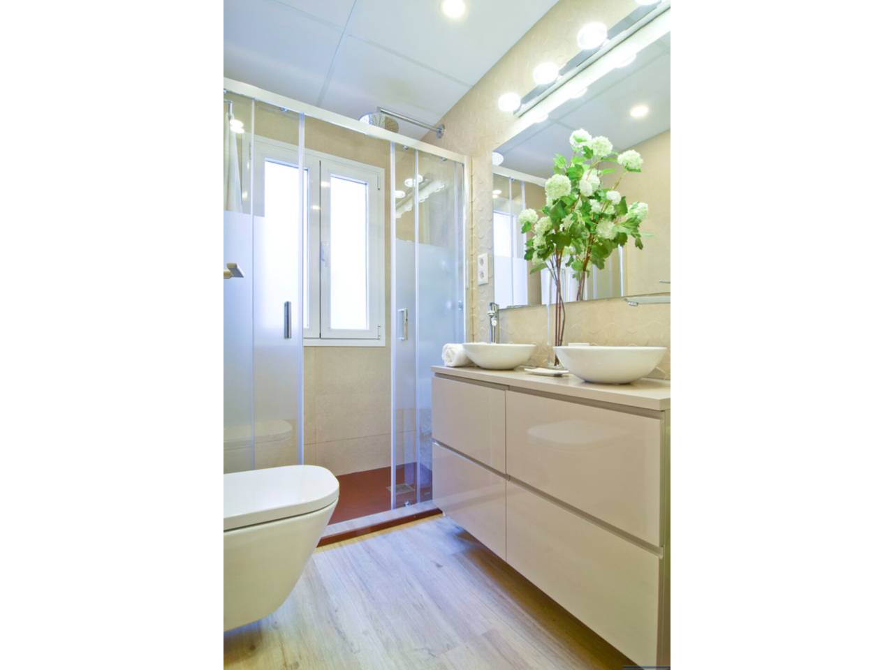 La zona de noche se compone de 2 dormitorios, el principal en suite con cama de matrimonio y vestidor. Los armarios están vestidos y son de techo a suelo, con gran capacidad de almacenaje,