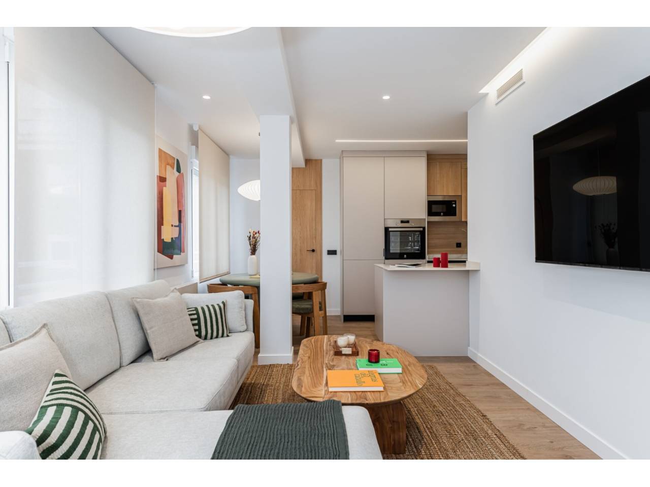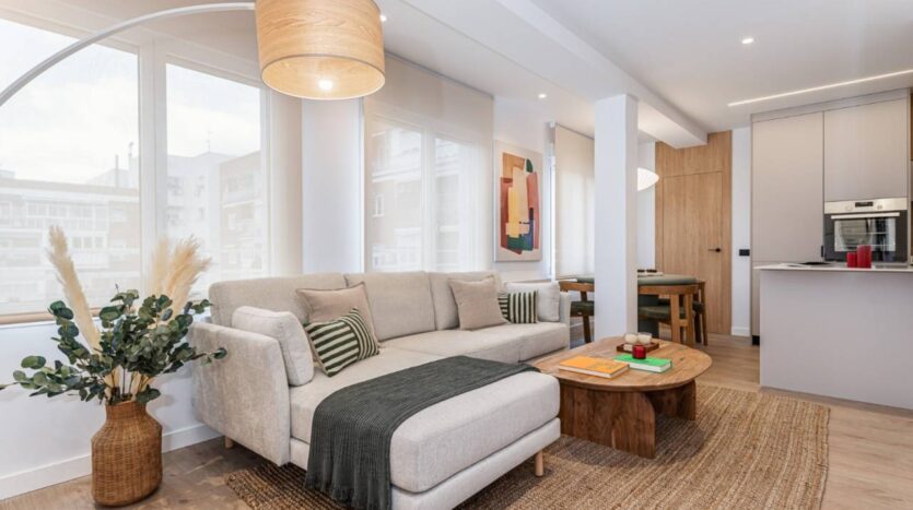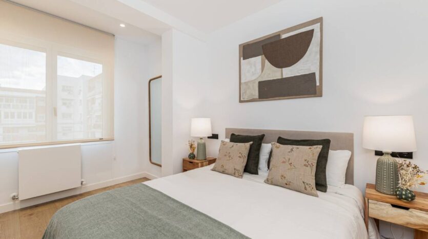Diplomatic Real Estate ofrece Excelente vivienda reformada y amueblada prácticamente a estrenar de 69m2, en Tetuán-Cuatro Caminos, en muy buena ubicación, a muy poca distancia de Nuevos Ministerios, el Santiago Bernabeu y el centro financiero de Azca. Extraordinarias comunicaciones y servicios en el entorno. La vivienda cuenta con espacioso Salón-comedor con cocina abierta completamente equipada. Dispone de dos dormitorios y dos baños. El dormitorio principal con baño integrado en suite, el segundo baño exterior. Cuenta con una distribución excelente y una decoración actual y de muy buena calidad. Calefacción central y aire acondicionado por conductos Frío/calor.