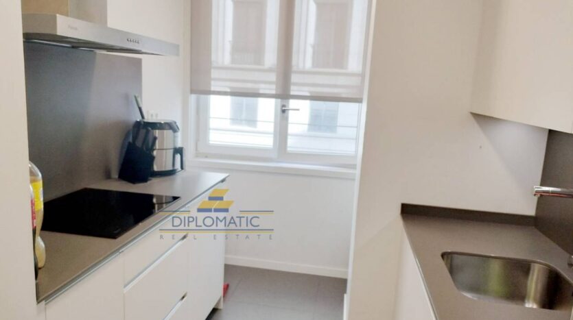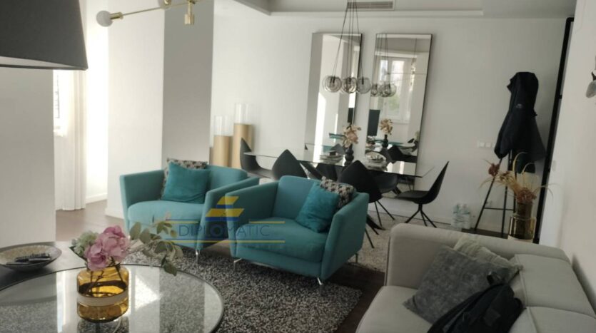 Diplomatic Real Estate, ofrece exclusiva vivienda amueblada edificio residencial y moderno, vivienda con grandes vistas a Gran Via, aportando luminosidad.
