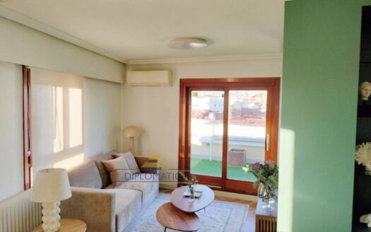 Diplomatic Real Estate alquila espectacular ático amueblado, exterior, luminoso, en edificio clásico del Barrio de Salamanca, que data de 1953.